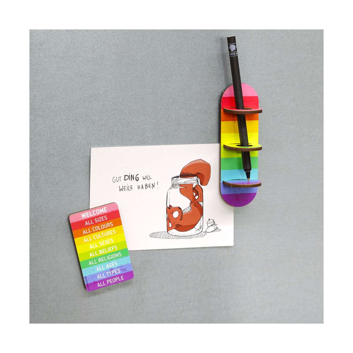Geistesblitze und Einkaufslisten können endlich sofort niedergeschrieben werden, denn mit dem Magnet-Stiftehalter ist immer einen Stift zur Hand, wenn man ihn benötigt. Der Stiftehalter aus dem WERKHAUS-Stecksystem wird zusammengesteckt und hält mithilfe der Magnete an Kühlschränken, Magnetwänden und vielen anderen eisenhaltigen Metallen.
