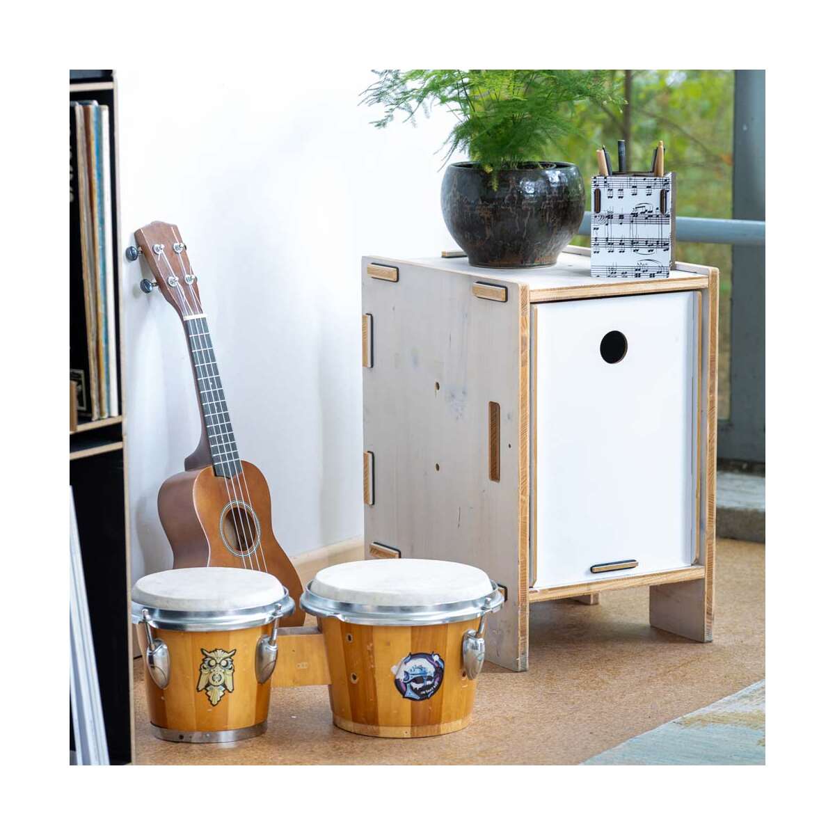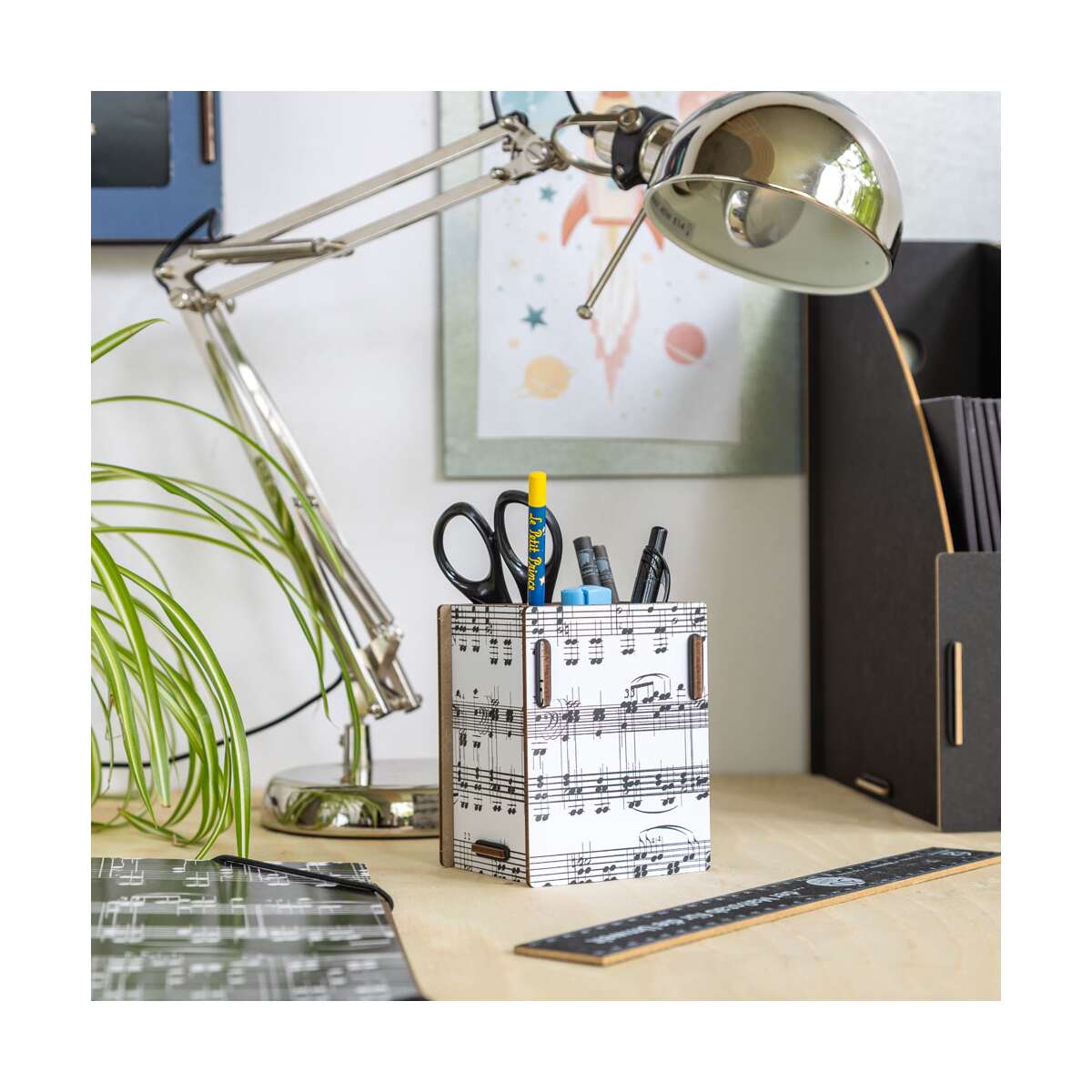 Whether in the music room, office or children's room, the box not only brings order but also musical flair to any room. The four compartments offer enough space for pens, brushes, rulers or other desk utensils and help to keep everything tidy and organised.