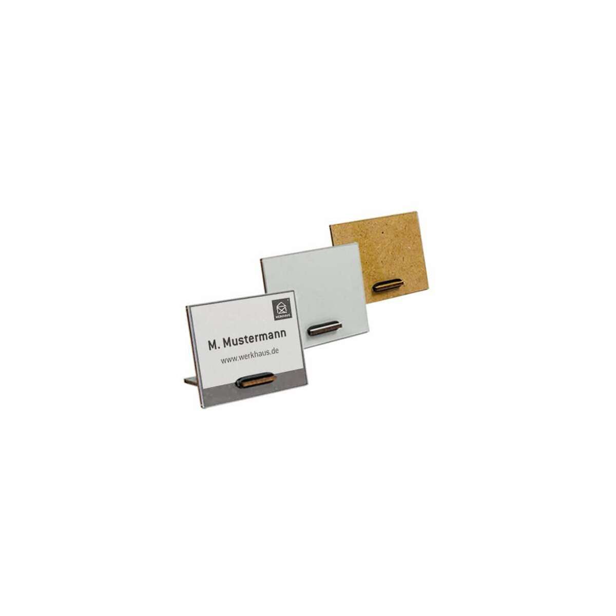 Die Aufsteller und Visitenkartenhalter aus MDF-Holz im Format DIN A8 verwandeln Visitenkarten und Ausdrucke in repräsentative Namenschilder und Informationstafeln für den Schreibtisch oder den Empfangstresen. Mit einem kurzen Handgriff ist die Beschilderung ausgetauscht und erneut einsatzbereit. Die Tischaufsteller aus Holz erhalten Sie im Doppelpack in drei verschiedenen Farbdesigns: Natur, Schwarz und Weiß.