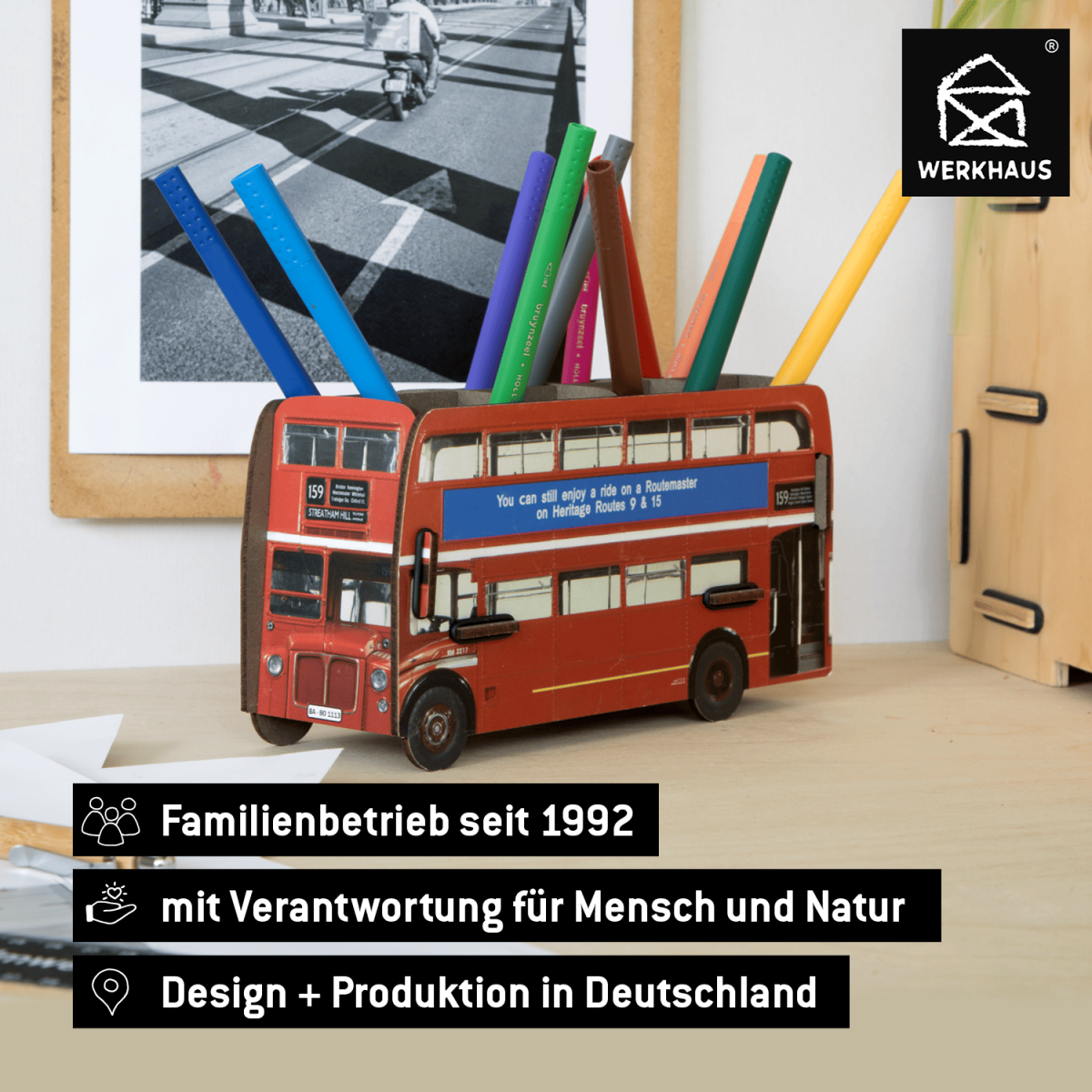 Jetzt können Sie sich ein Stück "British Empire" mit dem Doppeldecker nach Hause holen! Aus dem Stadtbild von London nicht mehr wegzudenken, laden diese historischen Doppeldeckerbusse jetzt auch Stifte und herumliegendes Büromaterial zum Sightseeing auf dem Schreibtisch ein.