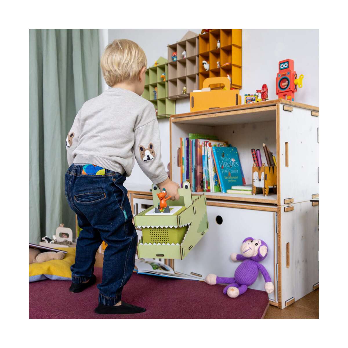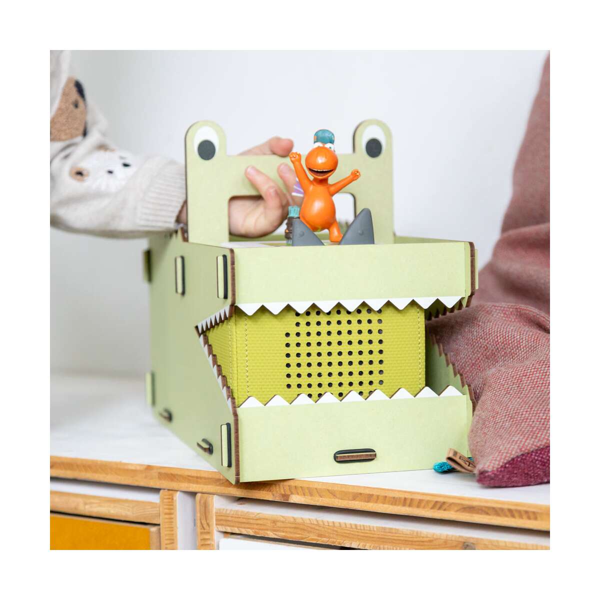 Ein echter Hingucker im Kinderzimmer oder bei kleinen Abenteuern: Die Tragebox in der Form eines freundlichen Krokodils eignet sich perfekt, um eine Toniebox, Tonies und Spielzeug sicher und stilvoll zu transportieren. Das geräumige Maul des Krokodils bietet Platz für eine Toniebox (Version 1 und 2). Die Öffnung ist so gestaltet, dass der Sound optimal nach außen dringt – ideal für Unterwegs-Hörspaß, ohne die Box entnehmen zu müssen. Im zweiten Fach ist reichlich Stauraum für bis zu 30 Tonie-Figuren und weiteres Spielzeug. Damit findet alles, was auf kleinen Ausflügen und großen Reisen für gute Laune sorgt, einen Platz und ist immer griffbereit._ _ _ _
