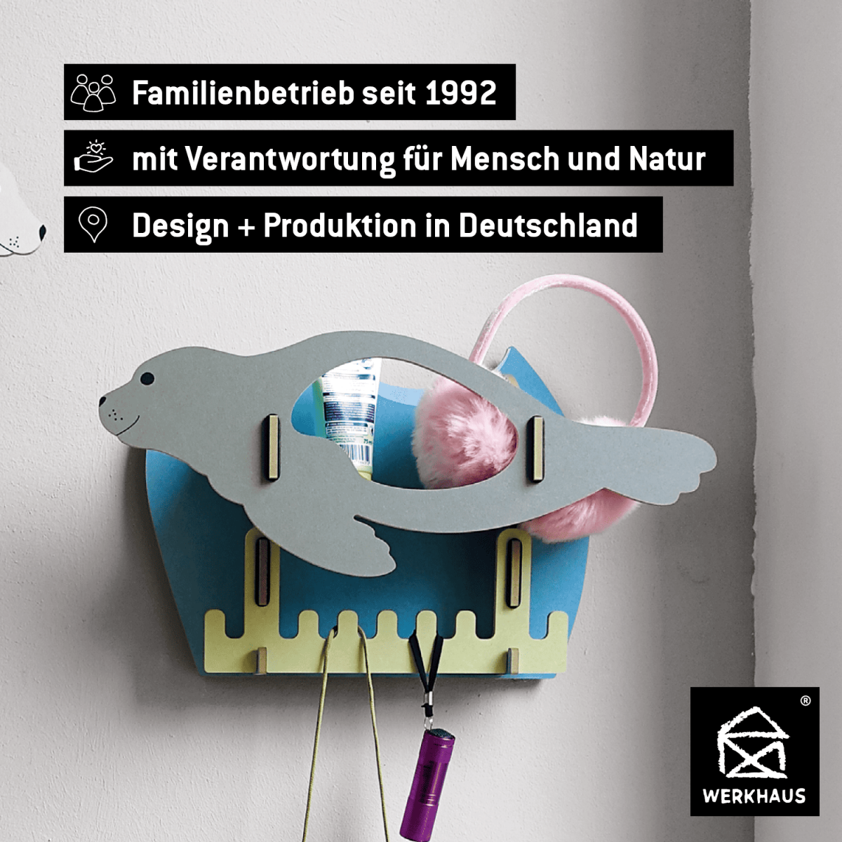 What do bears, seals and hippos have in common? If they are eating enough, they are really big-bellied. These relaxed companions inspired our new coat racks! In their big bellies they hoard warm hats, scarfs and gloves while the hooks underneath hold coats and bags. Of course, the cute boxes also look good in the kids' room and collect various treasures.- - - - -