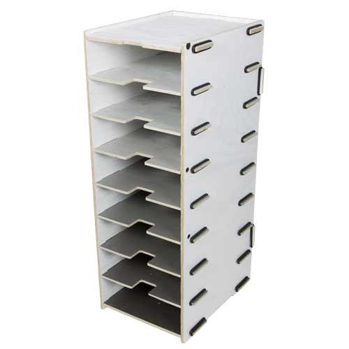 Das Ablagemodul mit 8 Fächern ist in vier Farbkombinationen verfügbar. Den Korpus gibt es jeweils in Weiß und Grau, die Ablagen im Grauverlauf oder in Regenbogen-Farben. Den Tower kannst du optional mit Schubladen bestücken, die es passend dazu im Grauverlauf oder im Regenbogen-Farbverlauf gibt. Zusätzlich gibt es einen Rollboden oder einen Sockel als Ergänzung zum Tower. Gestalte Dir das Ablagemodul ganz nach deinem Geschmack.