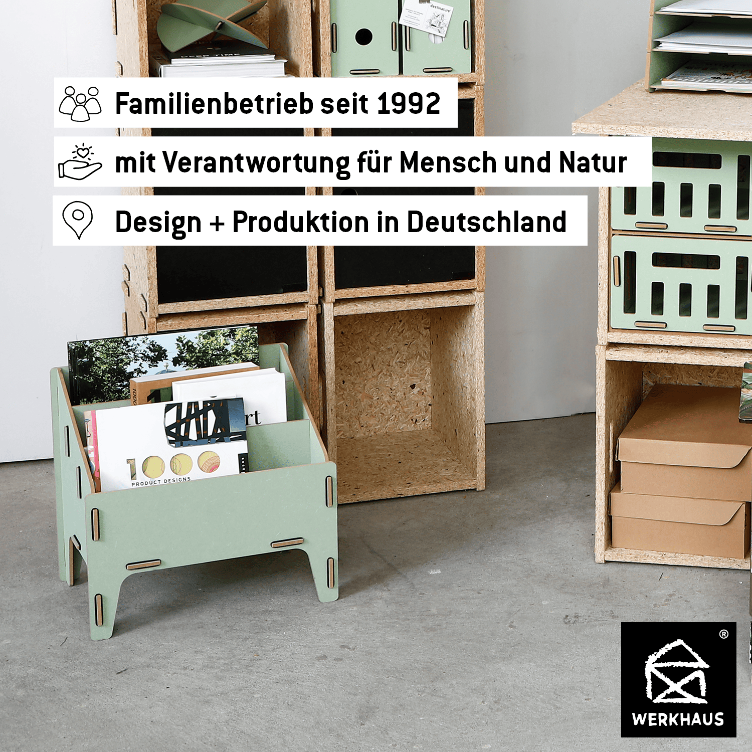 Diese formschöne Bücherkiste ist die perfekte Lösung für eine aufgeräumte und zugleich dekorative Bücheraufbewahrung. Mit ihren drei unterschiedlich hohen Fächern bietet sie Platz für verschieden große Bücher, vom Lieblingsbilderbuch bis zum Taschenroman, und macht das Blättern und Zugreifen besonders einfach.Ob als Bücherregal im Kinderzimmer, als praktische Bücherbox neben dem Sofa oder als charmantes Aufbewahrungselement im Flur: Die Bücherkiste steht stabil auf vier schlanken Beinen und wird so zu einem echten Hingucker in jedem Raum. Ideal für Familien, die Wert auf Ordnung und Design legen, und für alle, die Bücher nicht nur lesen, sondern auch schön präsentieren möchten.