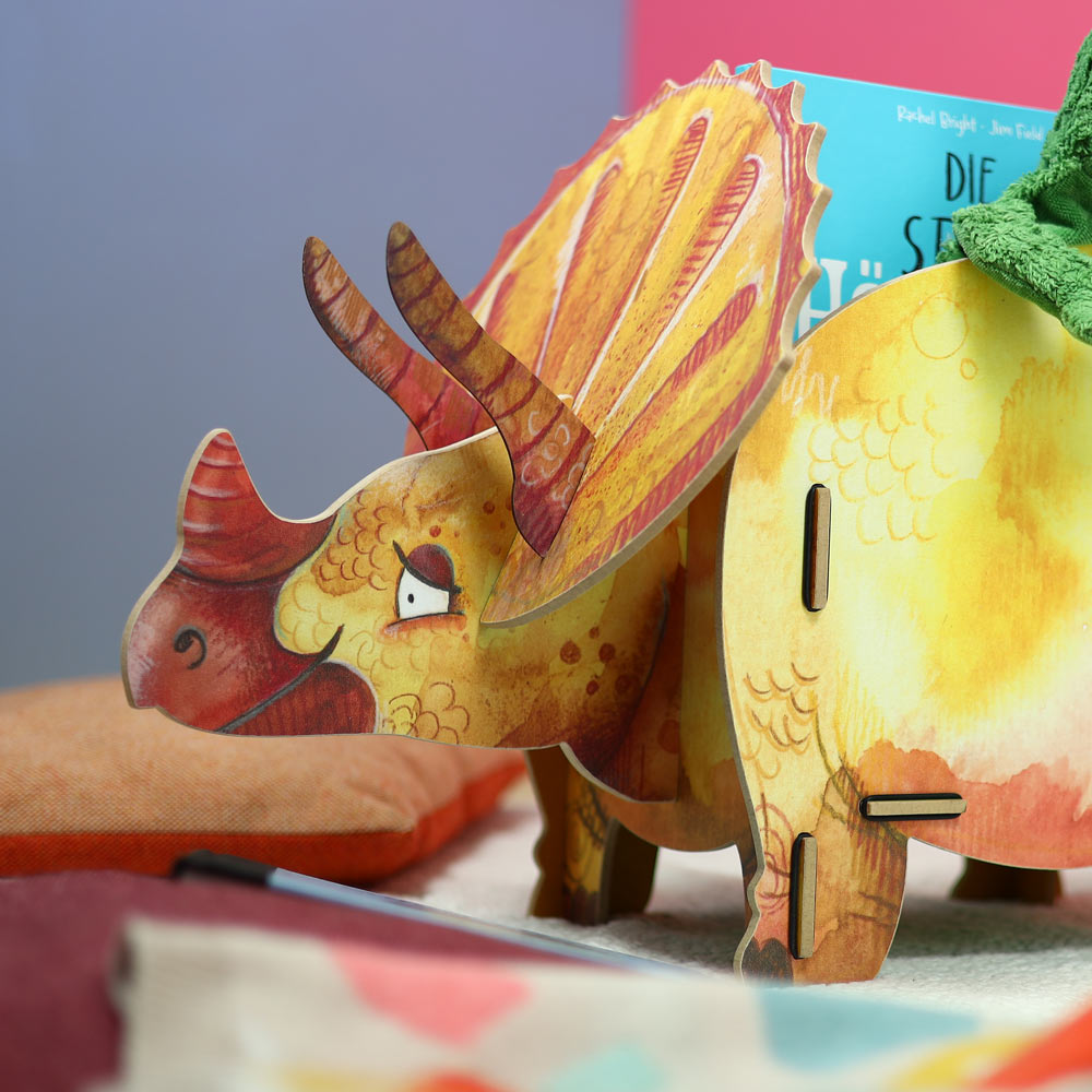 Der Triceratops bringt prähistorischen Charme ins Kinderzimmer und wird schnell zum Lieblingsbegleiter beim Spielen und Aufräumen. Als Spielzeugkiste ist er nicht nur ein echter Hingucker, sondern auch besonders praktisch: In zwei großzügigen Fächern finden Bücher und Spielsachen ihren Platz. So entsteht im Handumdrehen Ordnung und gleichzeitig eine lebendige Kulisse für fantasievolle Dino-Abenteuer.