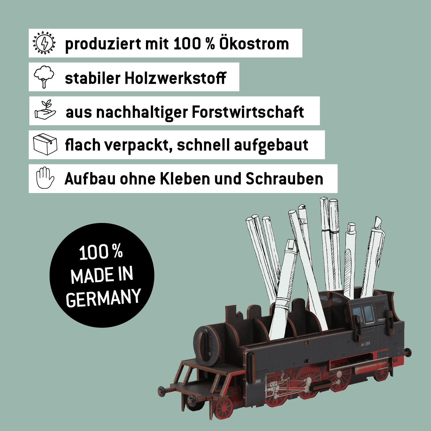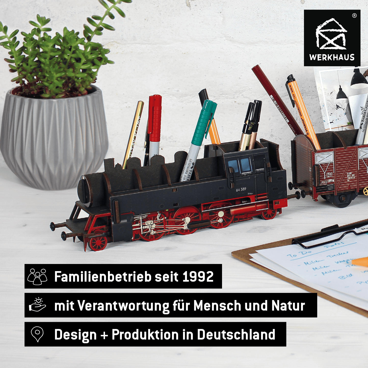 Nostalgisches Design: Dampflok BR 64 bringt Reisegeschichte als Stiftebox auf den Schreibtisch