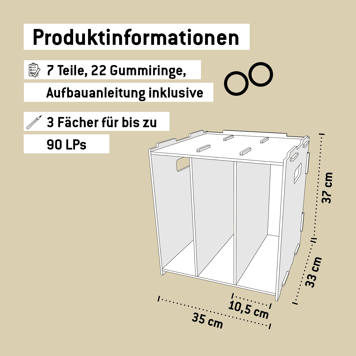 Wir empfehlen höchstens drei Medienboxen LP übereinander zu stapeln, um die Stabilität zu bewahren.