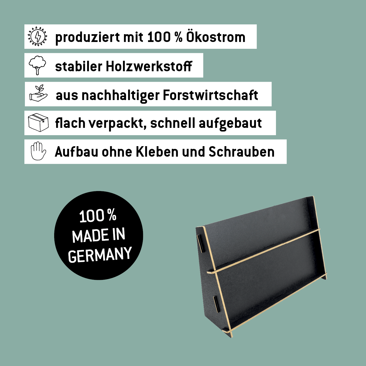 Entdecken Sie die effektiven Postkartenständer und Präsentationsdisplays im DIN-Format aus Holz für Ihre Postkarten, Informationskarten und andere Werbematerialien. Rücken Sie attraktive Flyer und Prospekte in den Fokus. Der Postkartenständer findet mit seiner geringen Tiefe von 14 cm auch auf dem Tisch, auf einem kleinen Tresen und auch auf Theken einen Platz und präsentiert bis zu acht verschiedene Postkartenmotive oder Flyer nebeneinander. Je nach Format und Motiv der Karte (DIN-A6-Hochformat oder Querformat) finden bis zu acht Karten in beiden Fächern einen gut sichtbaren Platz. Mit dem original WERKHAUS Stecksystem ist der Postkartenhalter schnell auf- und abgebaut.