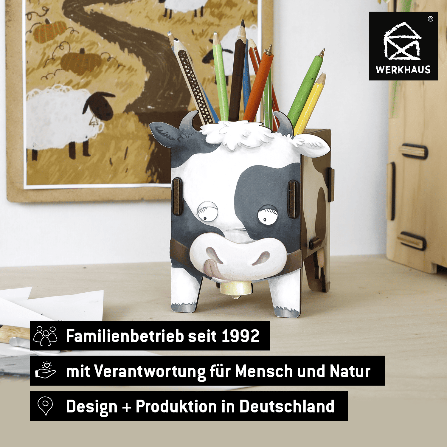 Mit dieser tierischen Verstärkung verjagen unsere Vierbeiner die Unordnung auf dem Schreibtisch und passen auf Stifte, Lineale und alles andere auf dem Schreibtisch auf. Die Kuh ist der ideale Begleiter zum Schulanfang und begeistert Kinderaugen.