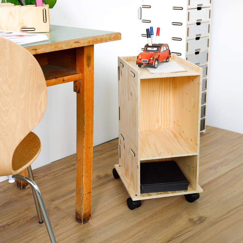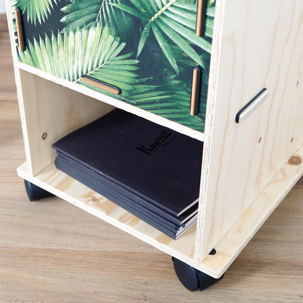 Unser Schreibtischcontainer aus der “Office Connection” wird mit seinen vier Rollen zum mobilen Ordnungshelfer im Büro und bietet Stauraum für alles, was Du am Arbeitsplatz brauchst. Der Rollcontainer wird aus Fichtensperrholz hergestellt und ist in Natur oder Pastellgrün erhältlich. Das minimalistische Design und die charakteristische Holzmaserung der Fichte sorgen für einen natürlichen Look.