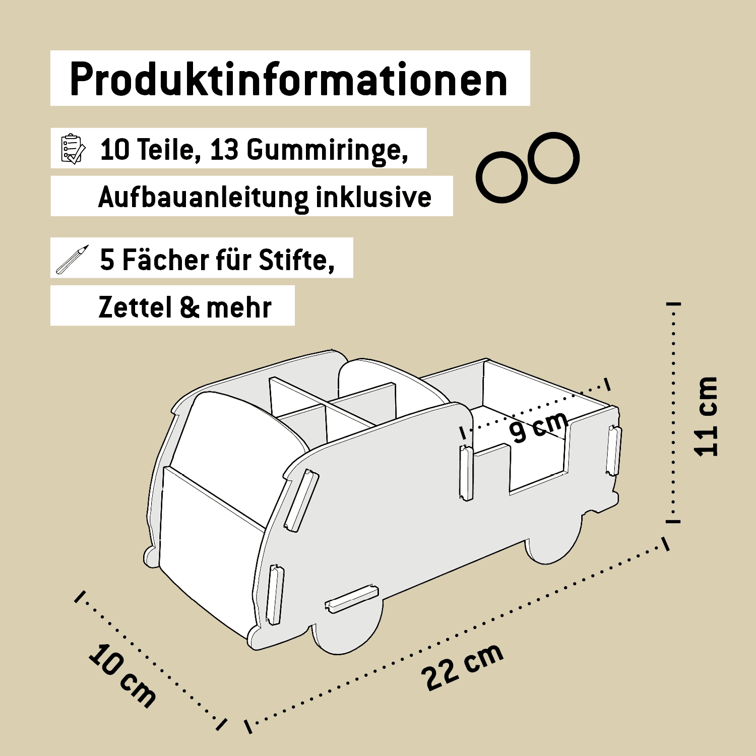 - Zwei Funktionen in einem: Stiftebox mit 4 Fächern vorne, Zettelbox auf der Pritsche