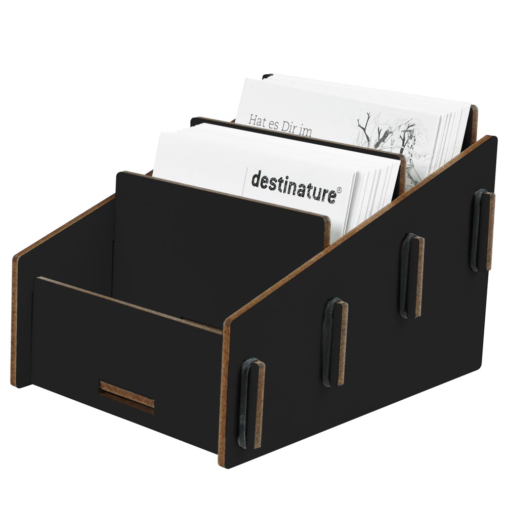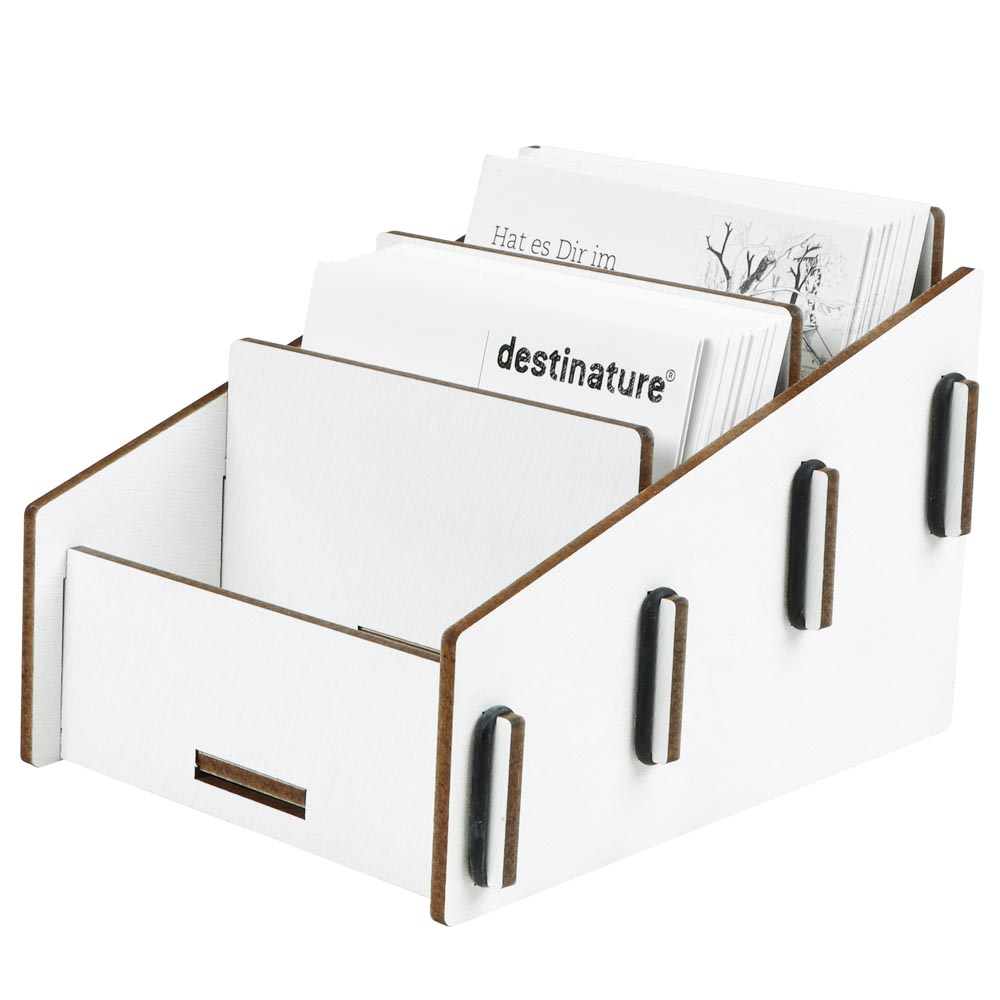 Dank der drei getrennten Fächer kannst du deine Karten perfekt organisieren und schaffst auf deinem Schreibtisch mehr Struktur. Der Halter überzeugt durch seine stabile Verarbeitung und das funktionale Design, das sich harmonisch in jede Arbeitsumgebung einfügt: im Büro, im Empfangsbereich oder im Besprechungsraum.