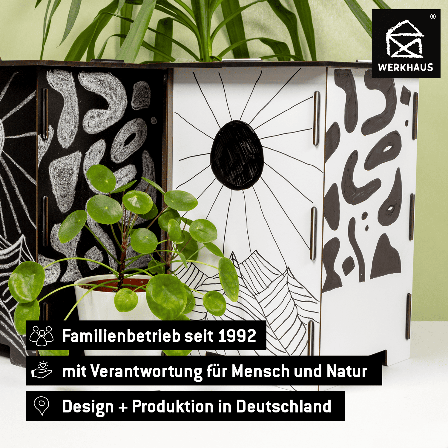 Der Hocker aus unserer "You are the artist"- Kollektion ist Ihre fünffache Leinwand und lädt ein zum Gestalten. Gestalten Sie Ihr individuelles Sitzmöbel ganz nach Ihrem Geschmack. Erlaubt ist, was gefällt! Die stabilen Holzfaserplatten (MDF), mit FSC-Papier kaschiert, machen so ziemlich jede Kunstrichtung mit: vom Wachsmaler bis zum Tuschkasten, von der Serviettentechnik bis zum Mosaikmuster. Jetzt heißt es: ausprobieren!