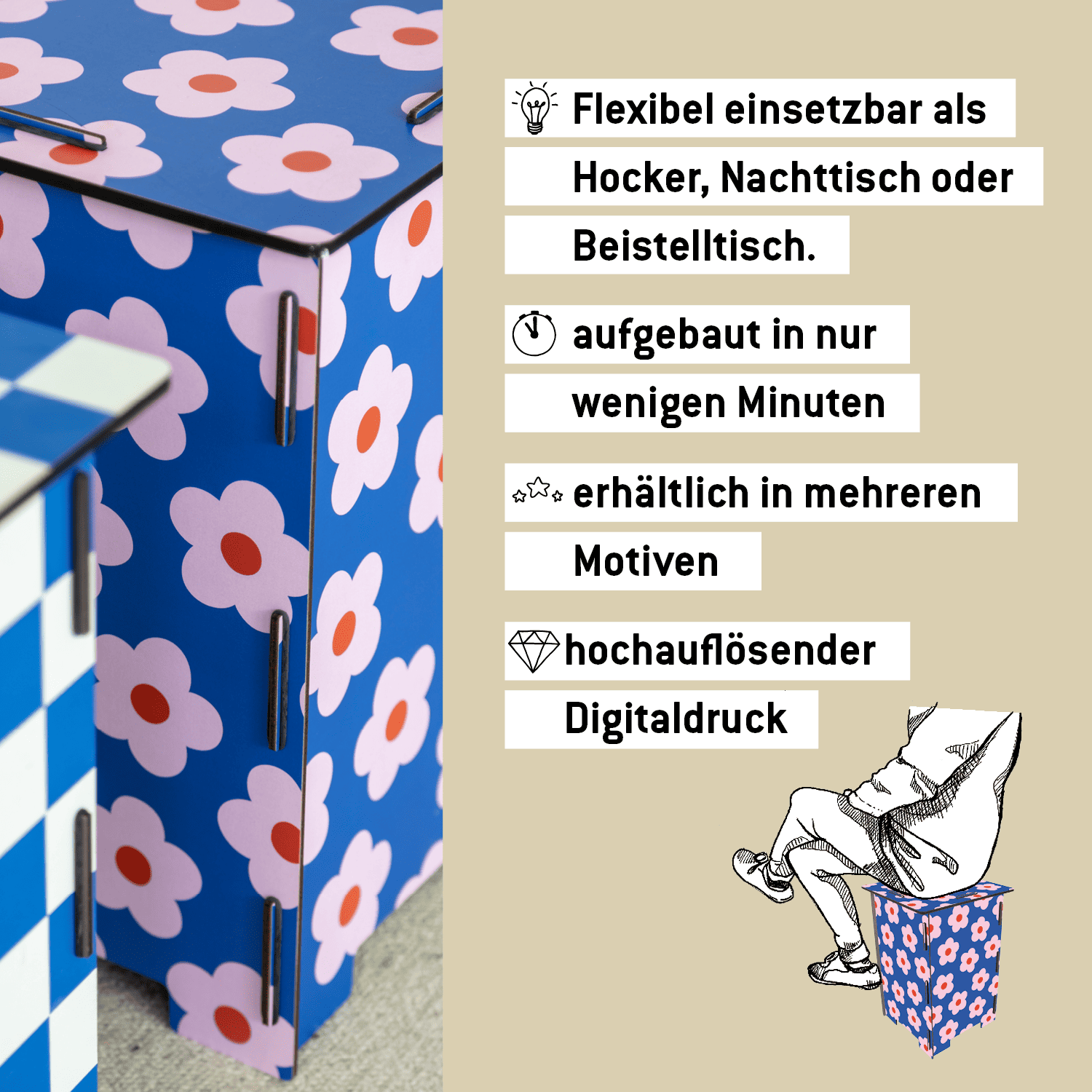 - als Sitzhocker, Fußhocker, Beistelltisch oder Pflanzenständer einsetzbar